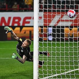 Российская Премьер-Лига (РПЛ). Тинькофф - Чемпионат России по футболу 2021/2022. 28-й тур. Матч между командами "Локомотив" (Москва) – "Рубин" (Казань) на стадионе "РЖД Арена". Вратарь команды "Рубин" Юрий Дюпин во время матча.