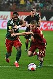 Российская Премьер-Лига (РПЛ). Тинькофф - Чемпионат России по футболу 2021/2022. 28-й тур. Матч между командами "Локомотив" (Москва) – "Рубин" (Казань) на стадионе "РЖД Арена". Игрок команды "Локомотив" Марк Рене Мампасси (слева) и игрок команды ""Рубин" Виталий Лисакович (справа) во время матча.
