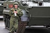 Военный парад в Волгограде, посвященный 77-ой годовщине Победы в Великой Отечественной войне. Военнослужащий перед началом парада.