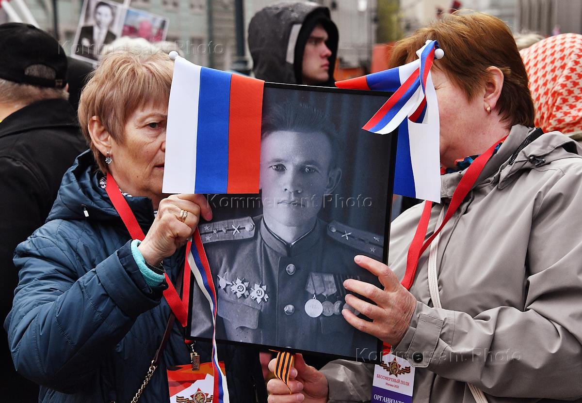 Празднование 77-ой годовщины Победы в Великой Отечественной войне. Участники акции памяти "Бессмертный полк" во время шествия.