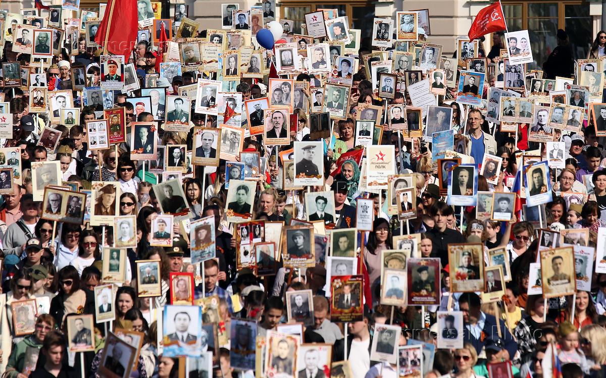Празднование 77-ой годовщины Победы в Великой Отечественной войне. Участники акции памяти "Бессмертный полк" во время шествия.