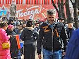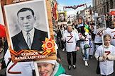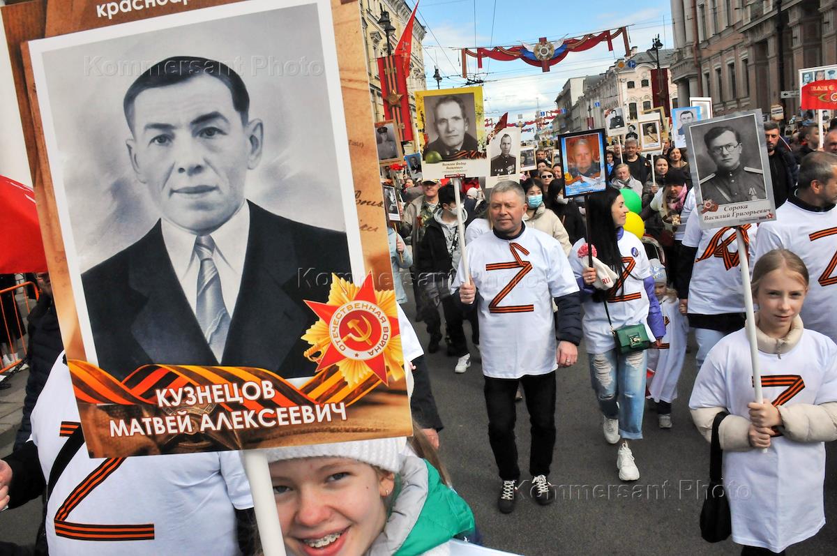 Празднование 77-ой годовщины Победы в Великой Отечественной войне. Участники акции памяти "Бессмертный полк" во время шествия.