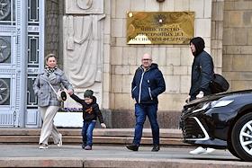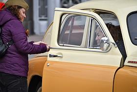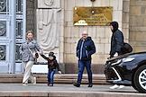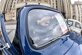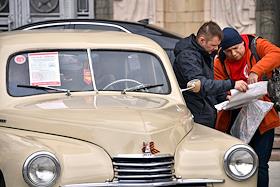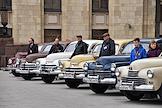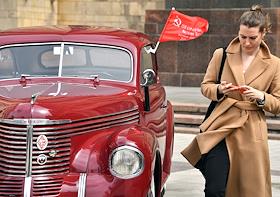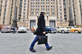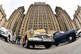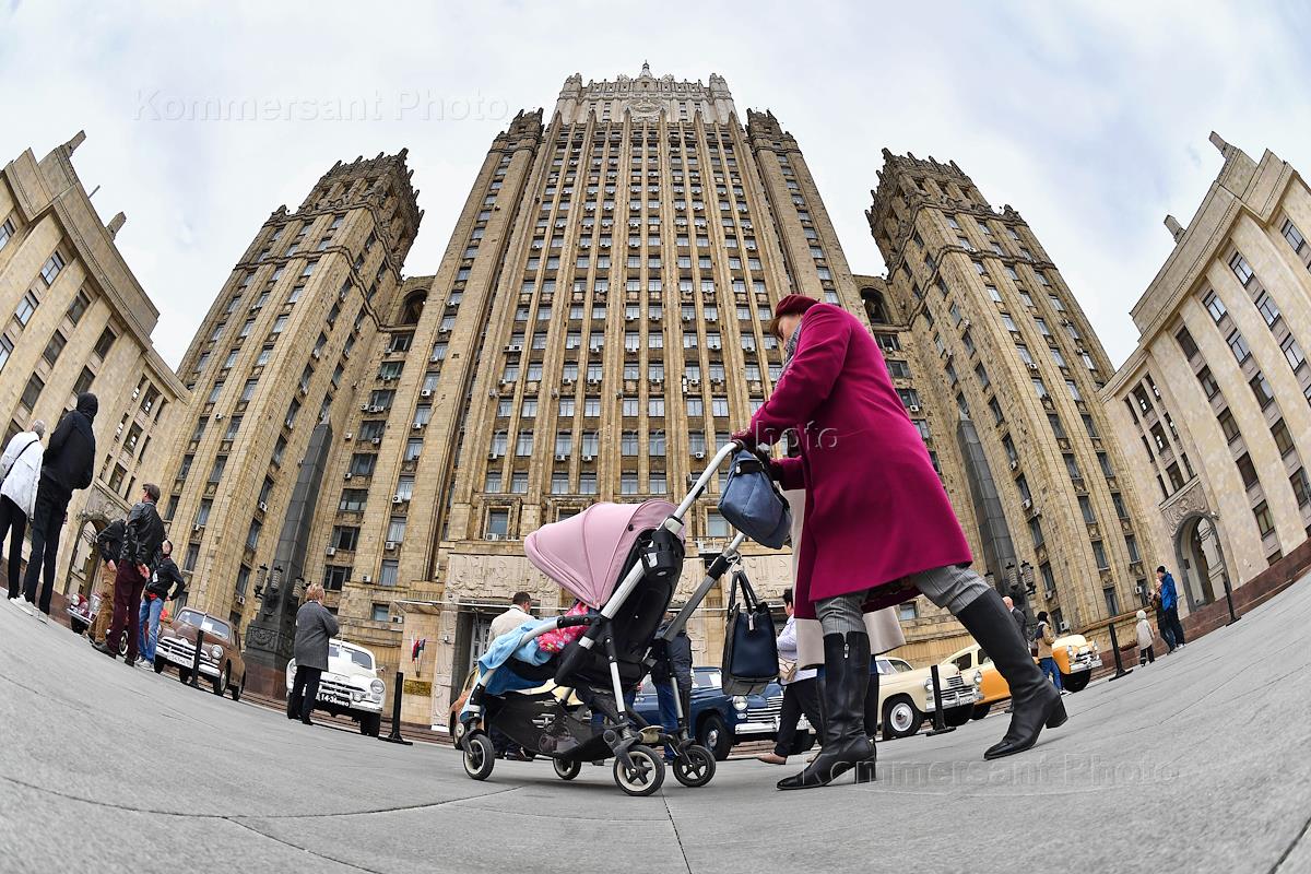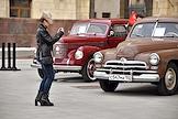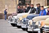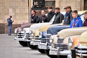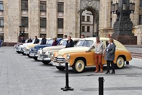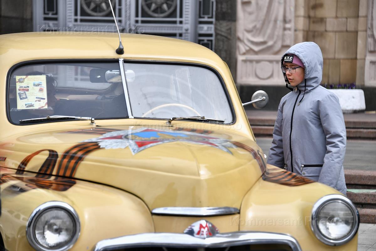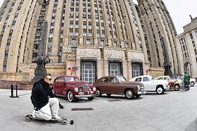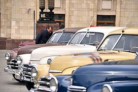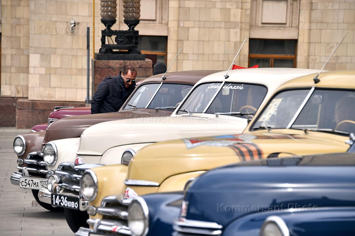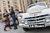 Выставка автомобилей марки "Победа", производившихся на Горьковском автомобильном заводе (ГАЗ) в 1946—1958 годах, у главного здания Министерства иностранных дел (МИД) России.