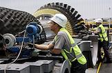 Работа предприятия "Сименс Технологии Газовых Турбин". Рабочие в заводском цехе.