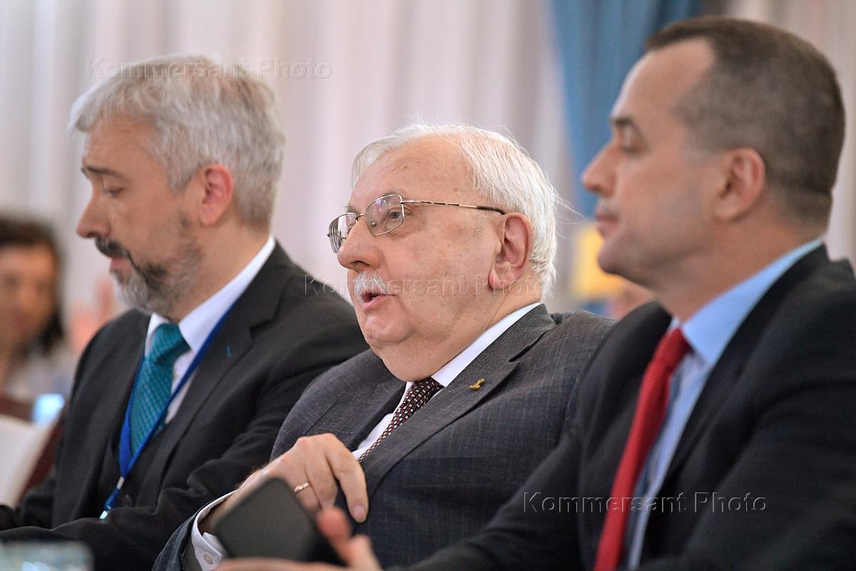 Meeting of the Council on Foreign and Defense Policy in the boarding house "Lesnye Dali". From left to right: Mikhail Delyagin, Deputy Chairman of the Russian State Duma Committee on Economic Policy, Sergey Kislyak, representative in the Federation Council of Russia from the executive body of state power of the Republic of Mordovia, and Andrey Klepach, Chairman of the Public Council under Rosstat, VEB.RF Chief Economist, before the meeting.