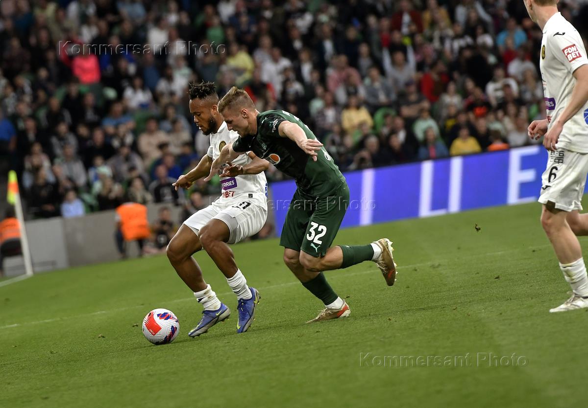 Российская Премьер-Лига (РПЛ). Тинькофф - Чемпионат России по футболу 2021/2022. 29-й тур. Матч между командами "Краснодар" (Краснодар) – ЦСКА (Москва) на стадионе "ФК Краснодар". Игрок команды "Краснодар" Дмитрий Пивоваров (справа) во время матча.