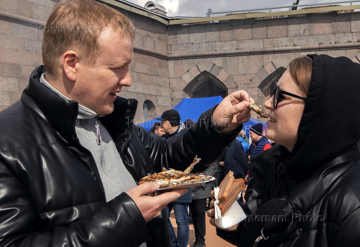 Фестиваль корюшки на пляже Петропавловской крепости. Посетители фестиваля