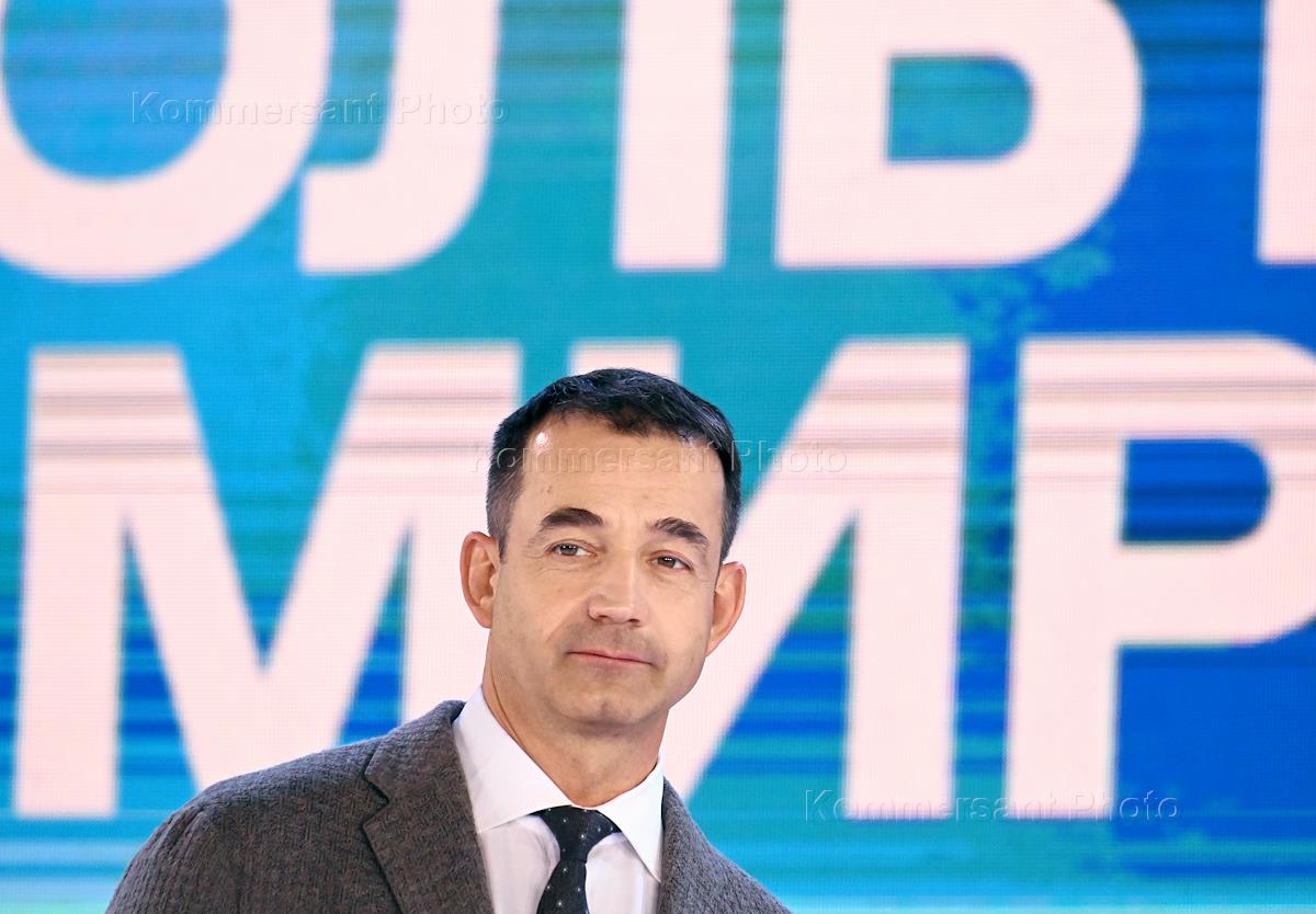 Федеральный Просветительский марафон "Новые горизонты", организованный Российским обществом "Знание", на ВДНХ. Первый заместитель комитета Государственной думы России по культуре Дмитрий Певцов во время марафона.