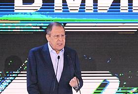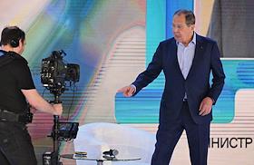 Федеральный Просветительский марафон "Новые горизонты" на ВДНХ. Министр иностранных дел России Сергей Лавров во время выступления на марафоне.