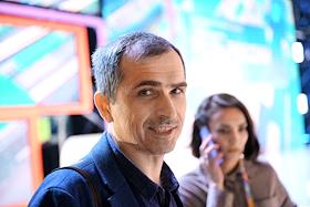 Федеральный Просветительский марафон "Новые горизонты", организованный Российским обществом "Знание", на ВДНХ. Журналист Юрий Подоляка во время марафона.