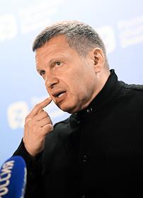 Федеральный Просветительский марафон "Новые горизонты", организованный Российским обществом "Знание", на ВДНХ. Телеведущий Владимир Соловьев во время марафона.