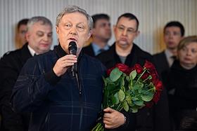 Церемония прощания с правозащитником, членом Совета по правам человека при президенте России Андреем Бабушкиным в Доме прав человека. Уполномоченный по правам человека в городе Москве Александр Музыкантский (в центре) на церемонии.