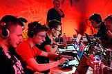 Форум по практической безопасности Positive Hack Days и открытая кибербитва The Standoff в Центре международной торговли. Жанровая фотография. Участники за ноутбуками.