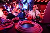 Форум по практической безопасности Positive Hack Days и открытая кибербитва The Standoff в Центре международной торговли. Жанровая фотография. Участники форума за компьютерами.