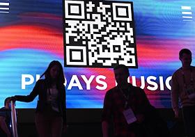 Форум по практической безопасности Positive Hack Days и открытая кибербитва The Standoff в Центре международной торговли. Жанровая фотография. Вывеска с надписью "Здесь взламывают банкоматы".