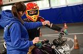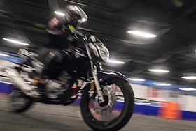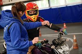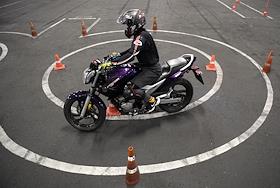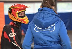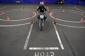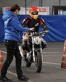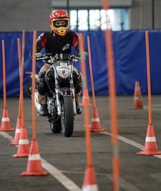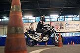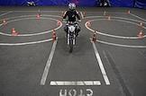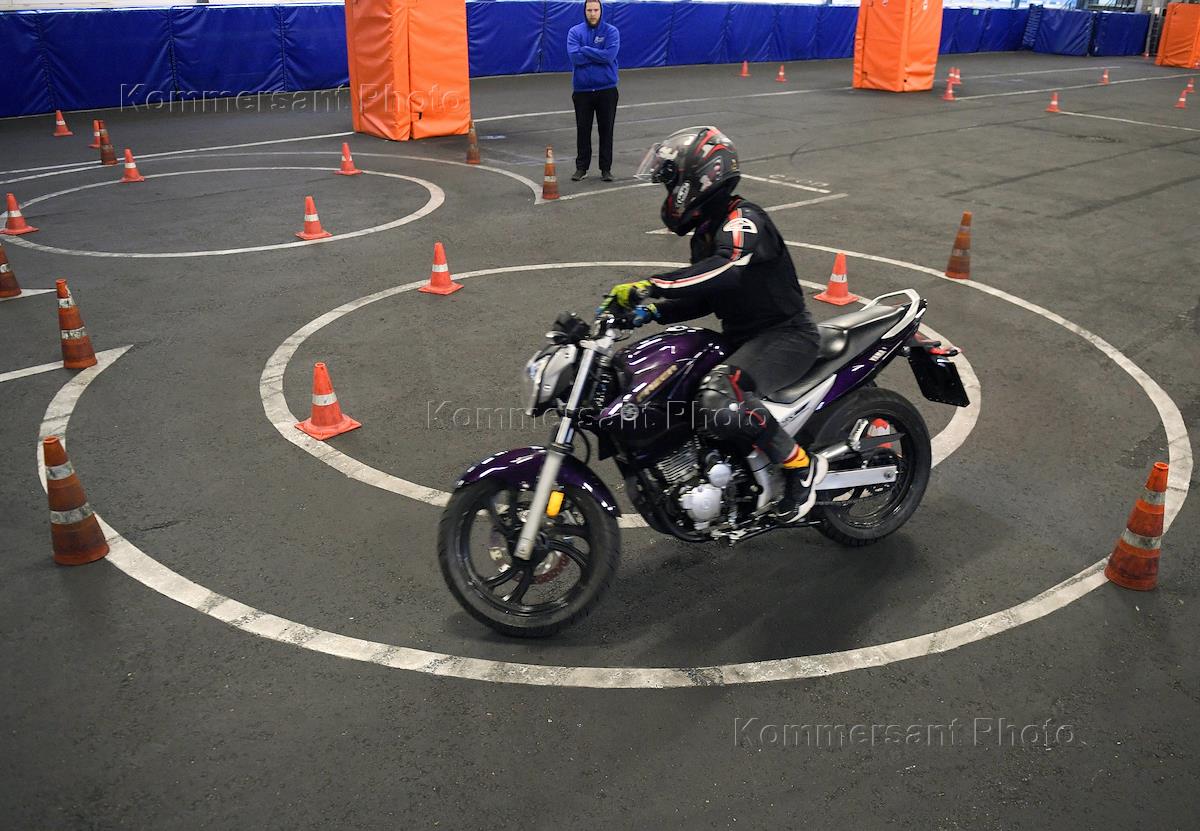 Работа мотошколы на базе Учебно-курсового комбината ГУП "Мосгортранс" на Нагорной. Жанровая фотография. Обучения управления мотоциклом.