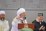 Церемония закладки первого камня в основание соборной мечети в Казани, строительство которой предусмотрено в рамках празднования 1100-летия принятия ислама Волжской Булгарией. Председатель Совет муфтиев России, председатель Духовного управления мусульман России Равиль Гайнутдин во время церемонии.