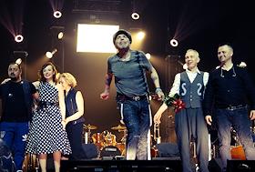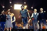 Музыканты Гарик Сукачев (в центре) и Александр Ф. Скляр (второй справа) во время выступления с концертной программой "Боцман и Бродяга" на сцене концертного зала "Крокус Сити Холл".