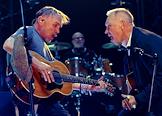 Музыканты Гарик Сукачев (слева) и Александр Ф. Скляр (справа) во время выступления с концертной программой "Боцман и Бродяга" на сцене концертного зала "Крокус Сити Холл".