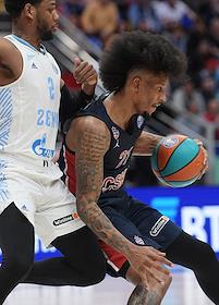 Единая лига ВТБ по баскетболу. Финал. Матч между командами ЦСКА (Москва) - "Зенит" (Санкт-Петербург) на стадионе "Мегаспорт". Игрок команды ЦСКА Каспер Уэйр во время матча.
