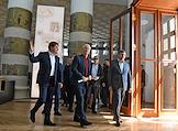 Мэр Москвы Сергей Собянин (в центре), министр науки и высшего образования Валерий Фальков (слева) и руководитель департамента культуры города Москвы Александр Кибовский (второй слева) во время посещения павильона №31 "Музей имени К. А. Тимирязева" на ВДНХ.