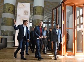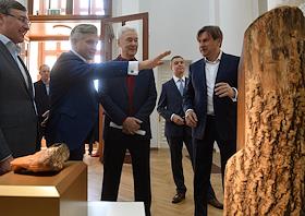 Министр науки и высшего образования Валерий Фальков (в центре) во время посещения павильона №31 "Музей имени К. А. Тимирязева" на ВДНХ.