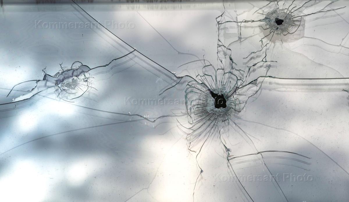 Последствия минометного обстрела бойцами Вооруженных сил Украины приграничного поселка Теткино Глушковского района Курской области. Следы от пуль в окне здания.