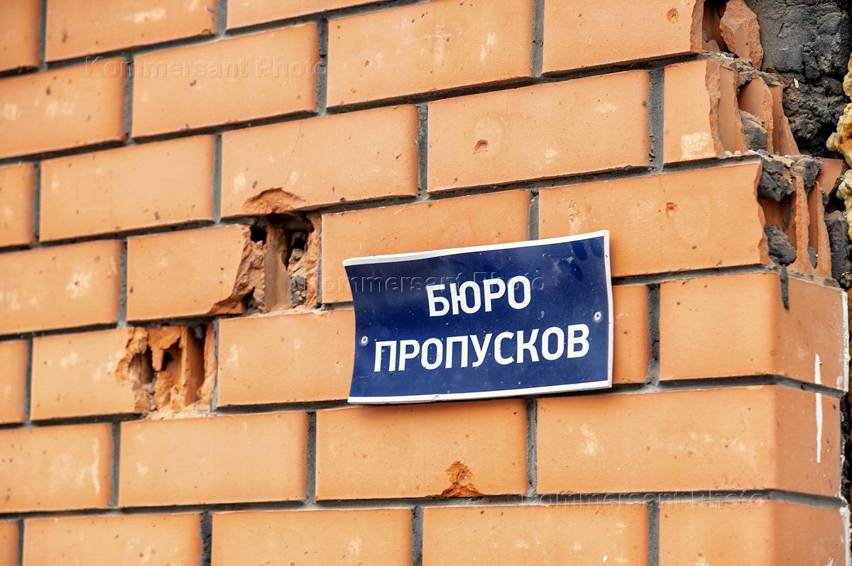 Consequences of mortar shelling by soldiers of the Armed Forces of Ukraine of the border village of Tetkino, Glushkovsky district, Kursk region. Bullet holes in a building window.