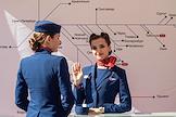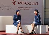 III Международный транспортный фестиваль SPbTransportFest. Жанровая фотография. Участницы фестиваля девушки бортпроводницы авиакомпании "Россия".