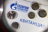 Жанровая фотография. Оплата коммунальных услуг. Квитанция на оплату за газ и монеты достоинством один, два рубля.