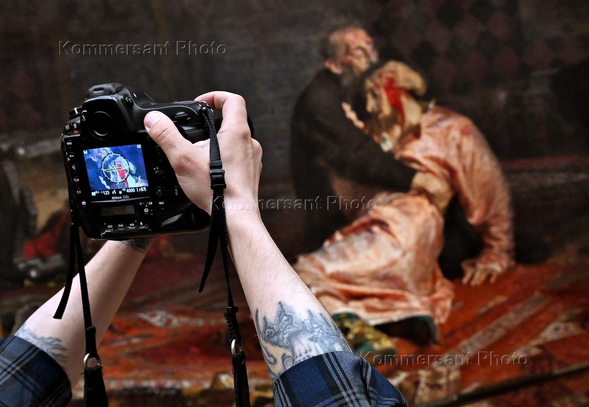 Пресс-конференция, посвященная завершению реставрации картины художника Ильи Репина "Иван Грозный и сын его Иван 16 ноября 1581" в Государственной Третьяковской галерее. Реставрация поврежденного вандалами полотна длилась четыре года, в ее ходе применялись современные технологии, такие как рентгенография и исследование современных адгезивов — специальных веществ, способных соединять материалы путем поверхностного сцепления. В мае 2018 года вандал металлическим столбиком ограждения разбил стекло картины и повредил полотно в трех местах в центральной части работы на фигуре царевича.