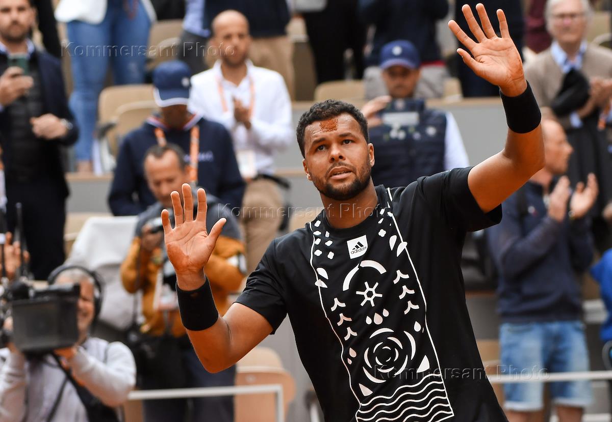 Открытый чемпионат Франции по теннису "Ролан Гаррос" 2022 (Roland Garros 2022). Первый круг. Французский теннисист Жо-Вилфрид Цонга во время матча с норвежским теннисистом Каспером Рууд.