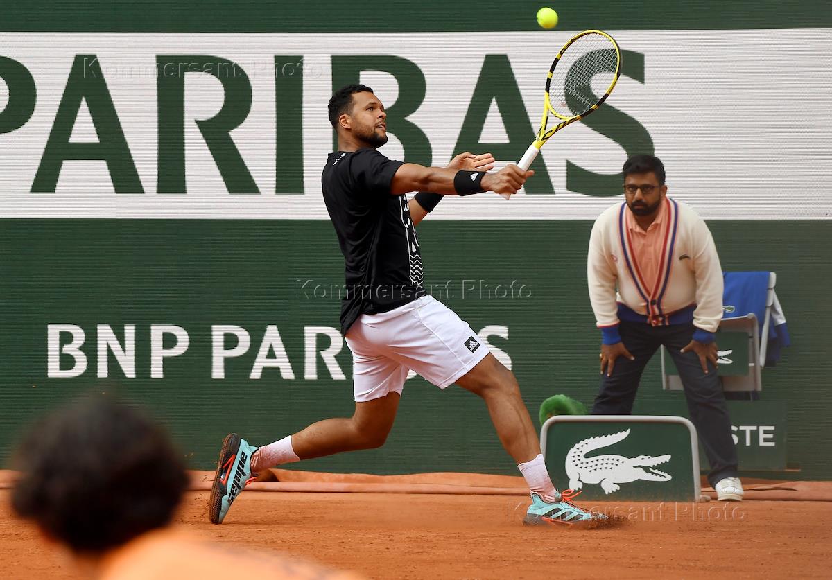 Открытый чемпионат Франции по теннису "Ролан Гаррос" 2022 (Roland Garros 2022). Первый круг. Французский теннисист Жо-Вилфрид Цонга во время матча с норвежским теннисистом Каспером Рууд.