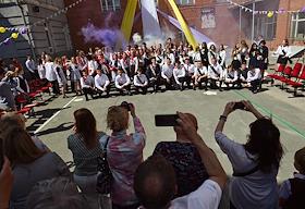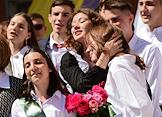Последний звонок в Новосибирске. Жанровая фотография. Выпускники во время последнего звонка в гимназии №16.