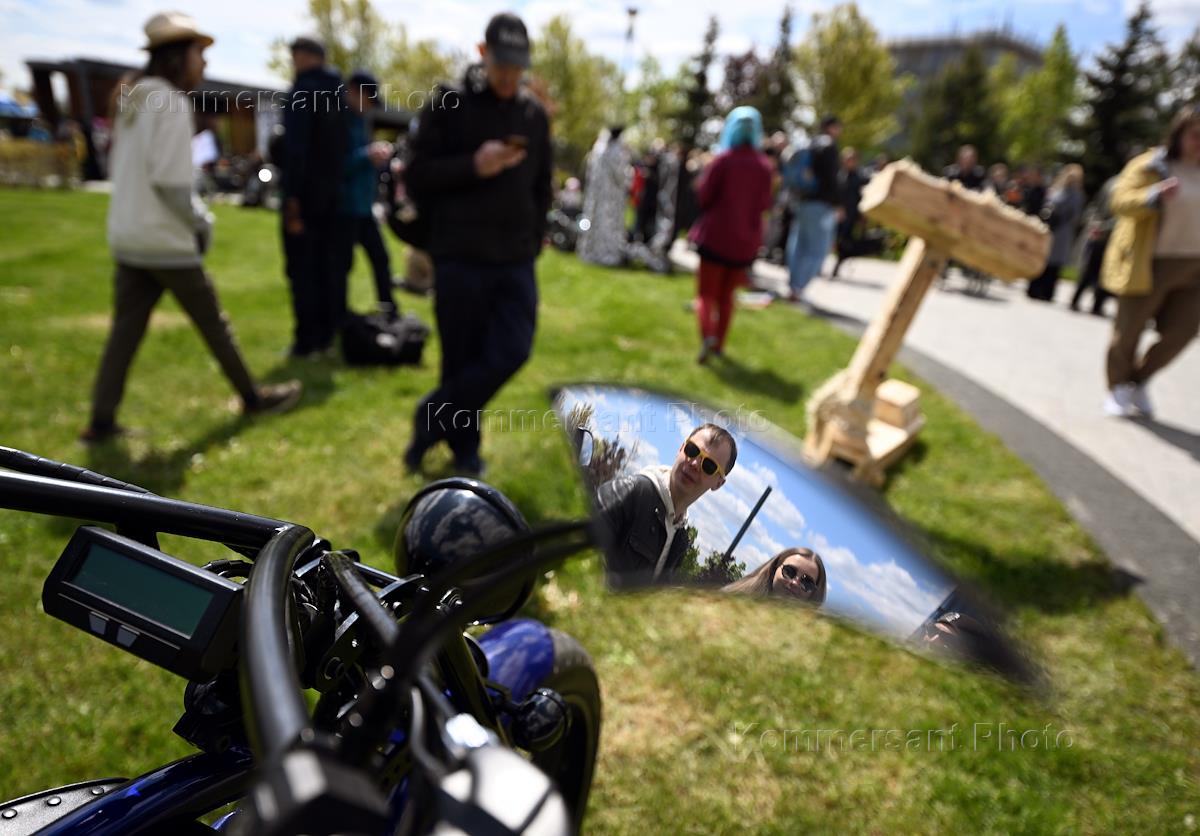 Гик-парад необычных транспортных средств, организованный фестивалем Geek Picnic при поддержке Фонда креативных индустрий, в рамках международного Дня гиков на территории инновационного центра "Сколково". Участники во время парада.