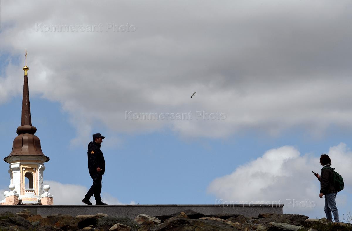 Виды Москвы. Жанровая фотография. Сотрудник Росгвардии во время дежурства в парке "Зарядье".