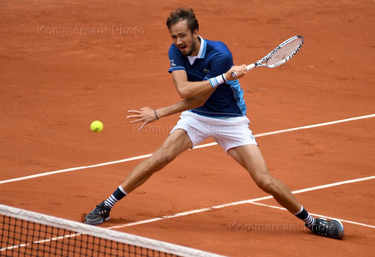 Чемпионат Франции по теннису "Ролан Гаррос" 2022 (Roland Garros 2022). Второй круг. Российский теннисист Даниил Медведев во время матча с сербским теннисистом Ласло Джере.