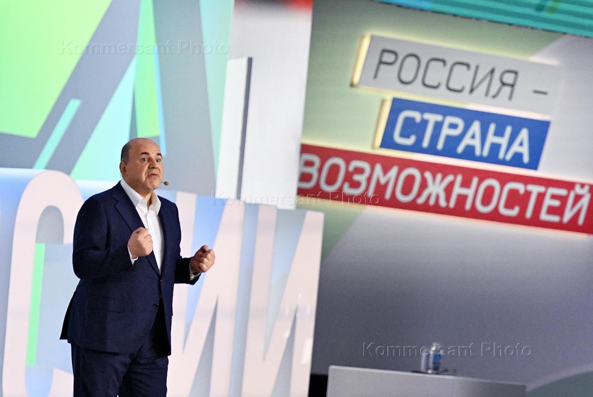 Superfinal of the fourth season of the "Leaders of Russia" management competition - the flagship project of the presidential platform "Russia - the Land of Opportunities" in Gostiny Dvor. Russian Prime Minister Mikhail Mishustin speaking at the competition.
