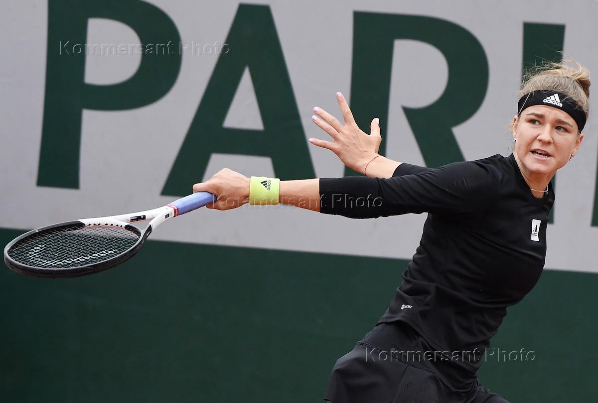 Чемпионат Франции по теннису "Ролан Гаррос" 2022 (Roland Garros 2022). 3-й круг. Чешская теннисистка Каролина Мухова во время матча с американской теннисисткой Амандой Анисимовой.