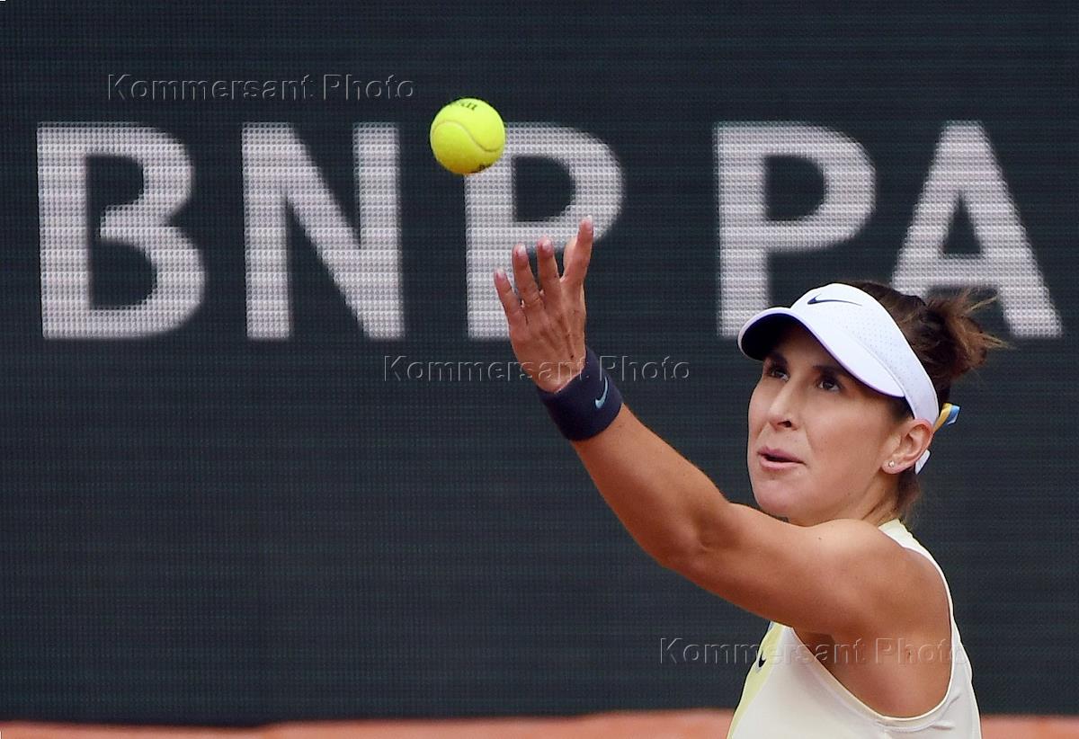 Чемпионат Франции по теннису "Ролан Гаррос" 2022 (Roland Garros 2022). 3-й круг. Швейцарская теннисистка Белинда Бенчич во время матча с канадской теннисисткой Лейлой Фернандес.