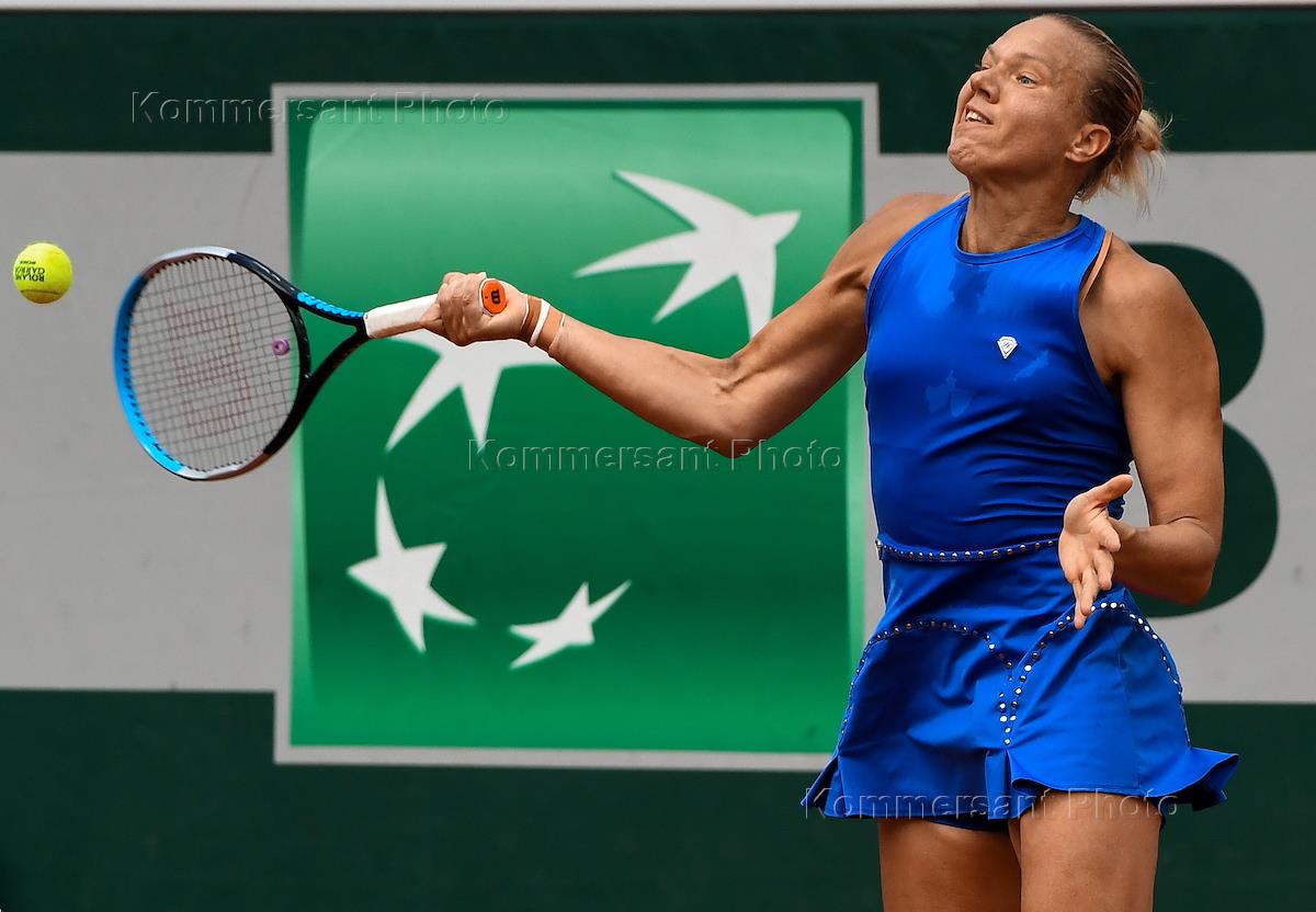 Чемпионат Франции по теннису "Ролан Гаррос" 2022 (Roland Garros 2022). 3-й круг. Эстонская теннисистка Кайя Канепи во время матча с американской теннисистка Кори Гауфф.