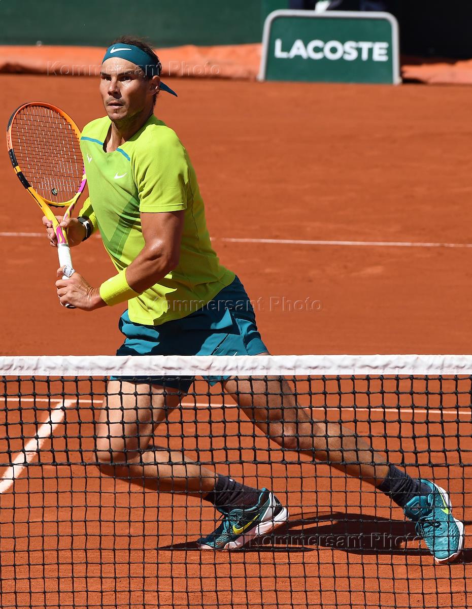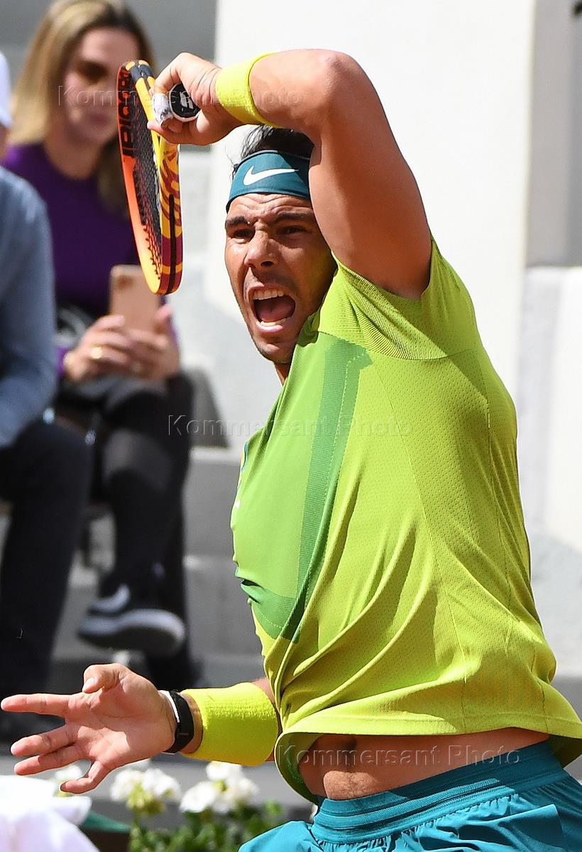 Чемпионат Франции по теннису "Ролан Гаррос" 2022 (Roland Garros 2022). 3-й круг. Испанский теннисист Рафаэль Надаль во время матча с нидерландским теннисистом Ботиком ван де Зандсхулпом.