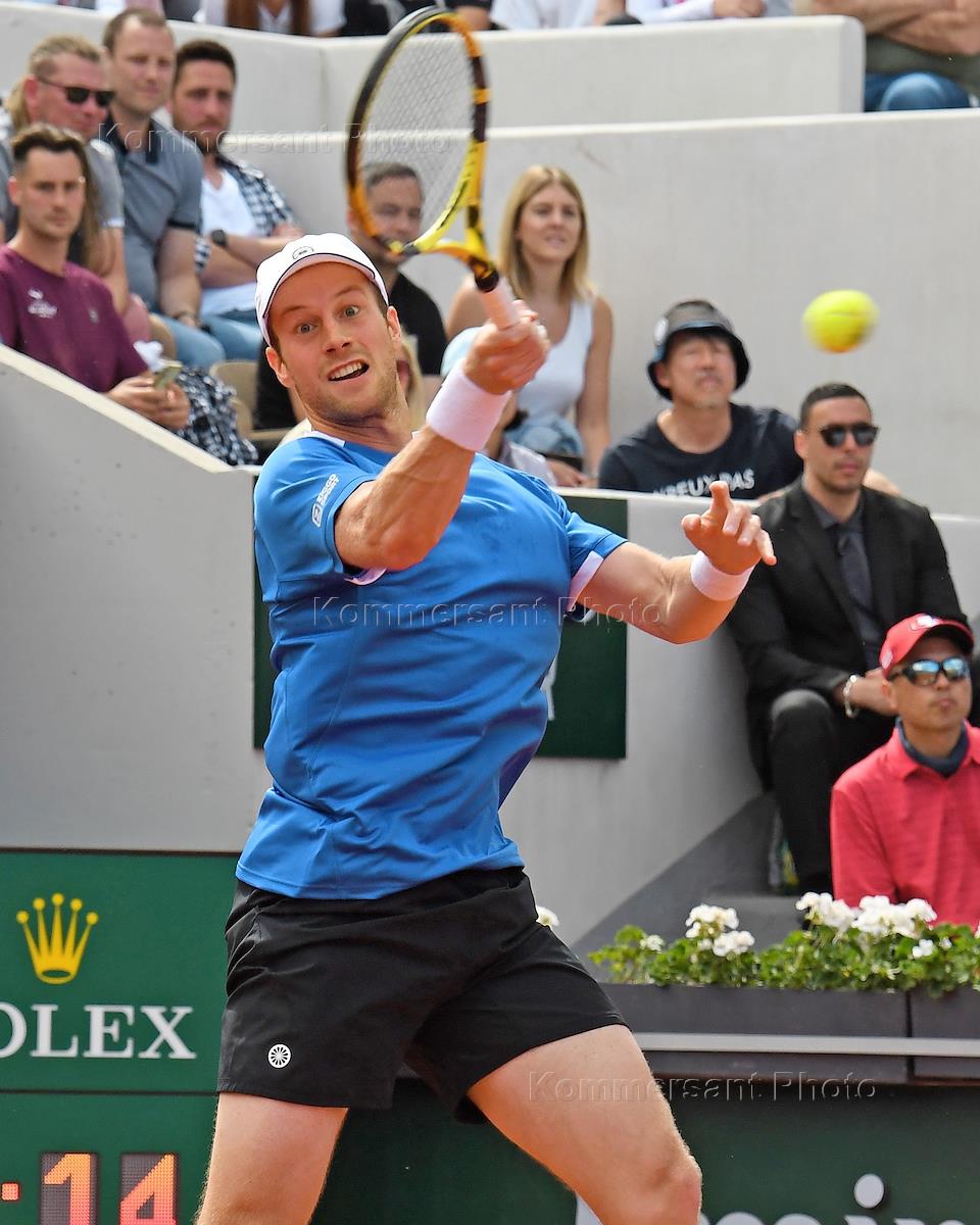 French Tennis Championship "Roland Garros" 2022. 3rd round. Slovenian tennis player Aljaz Bedene during a match with Serbian tennis player Novak Djokovic.