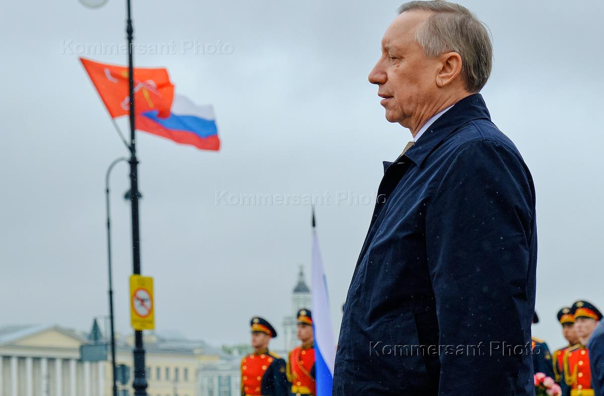 City Day celebration in St. Petersburg. Flower-laying ceremony at the Bronze Horseman monument to Peter the Great on Senate Square. Governor of St. Petersburg Alexander Beglov during the ceremony.