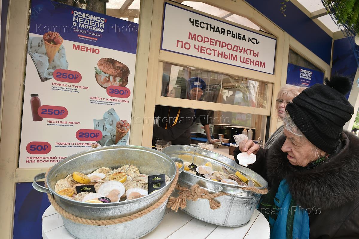 Шестой гастрономический монофестиваль "Рыбная неделя в Москве" на Манежной площади.