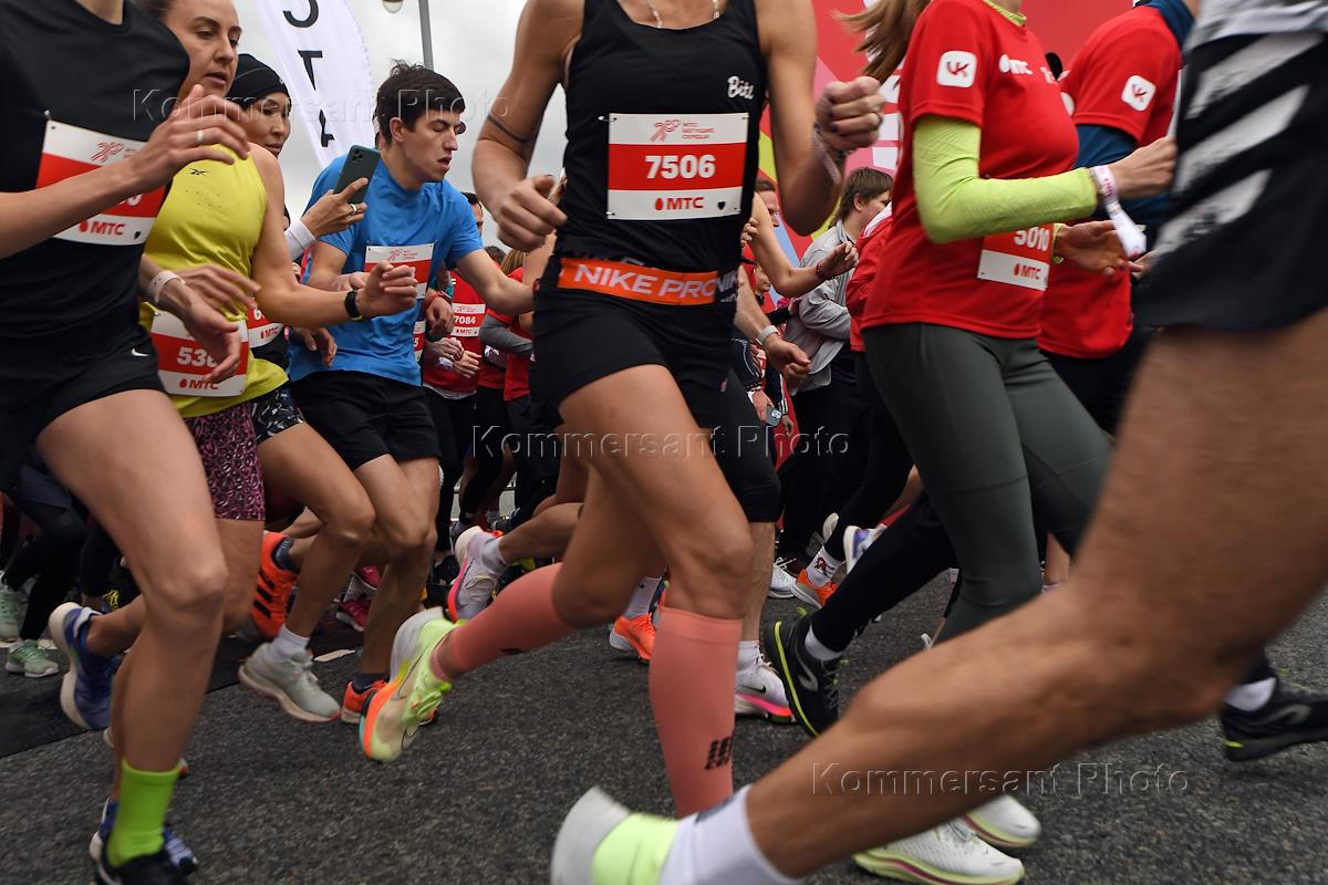 MTS Charity Run "Running Hearts-2022" under the motto #RunWithMeaning! started on Vasilyevsky Spusk. Participants during the race.