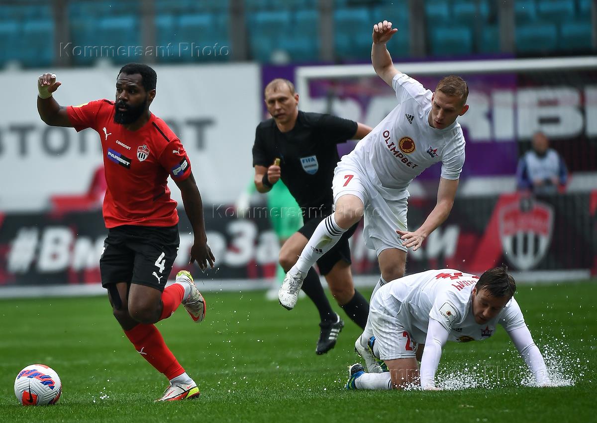 Transitional tournament of the Russian Premier League (RPL). Match between the teams "Khimki" (Khimki) - "SKA-Khabarovsk" (Khabarovsk) at the stadium "Khimki Arena". Khimki team player Brian Idovu (left) during the match.