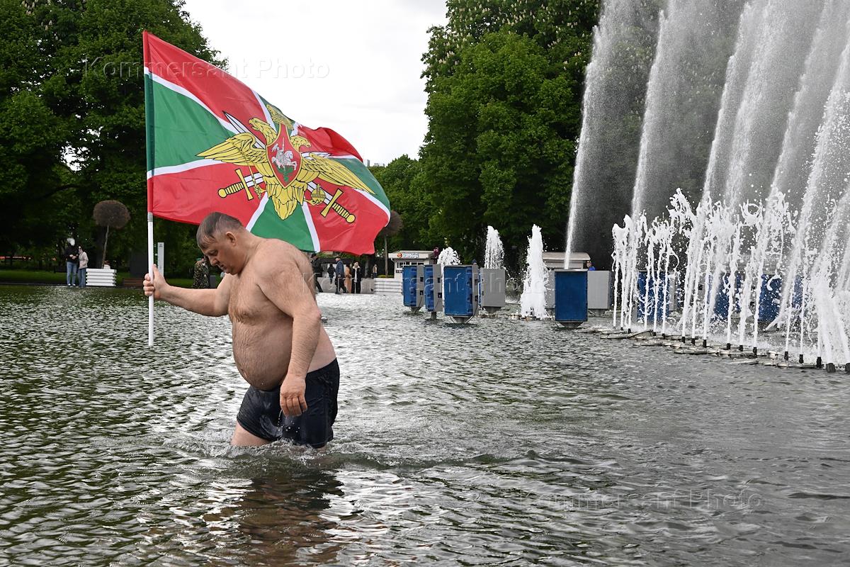 Celebration of the Day of the border guard. Soldiers-border guards during the festivities in Gorky Park.
