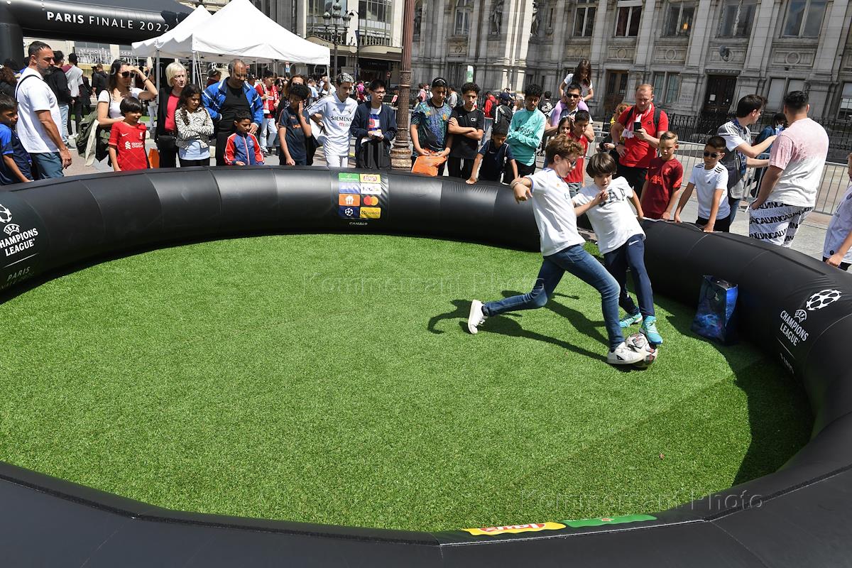 UEFA Champions League Final. Match between teams "Liverpool" (England, Liverpool) - "Real Madrid" (Spain, Madrid). The Champions League final was supposed to be held in St. Petersburg, but UEFA representatives moved it to France in connection with the special military operation of the Russian Armed Forces in Ukraine. Genre photography. Football fans in the fan zone before the start of the match.