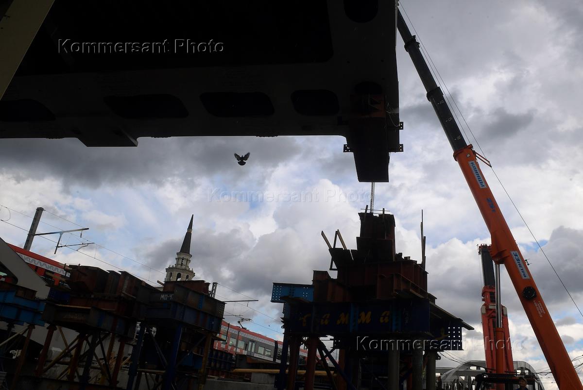 The process of sliding the largest arch of the Kalanchevsky overpass on Komsomolskaya Square ("Three stations square"), which will become part of the double-track overpass.